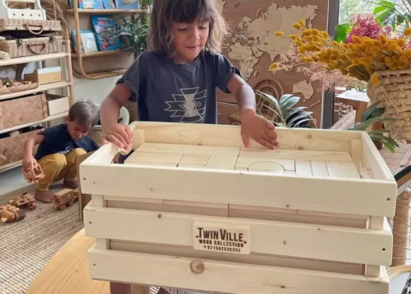 Wooden block building, develops creative thinking, spatial orientation, and good eye coordination. It improves fine motor skills and gives basic ideas about equilibrium and the basics of construction. This toy is open-ended so that children have infinite ways of playing with it. We use high-quality, Canadian Pine, for this set. The set consists of 56 blocks that are perfectly sanded and the corners have been rounded for your child’s safety.